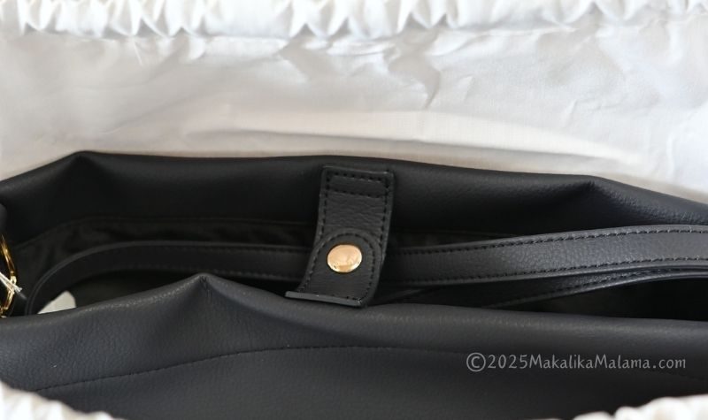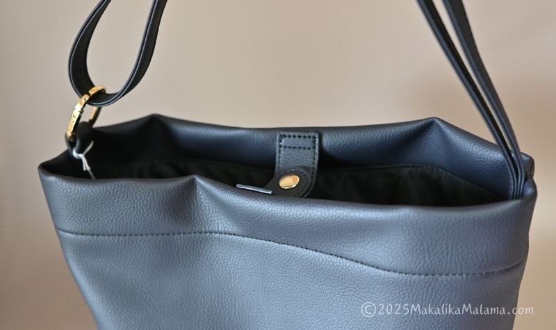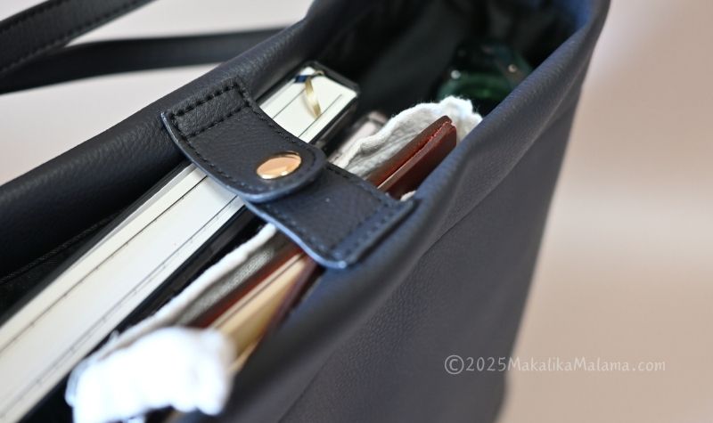 スナップボタンで留めるタイプで、がばっとモノを出し入れしやすいです。